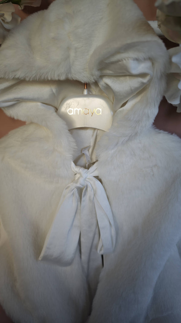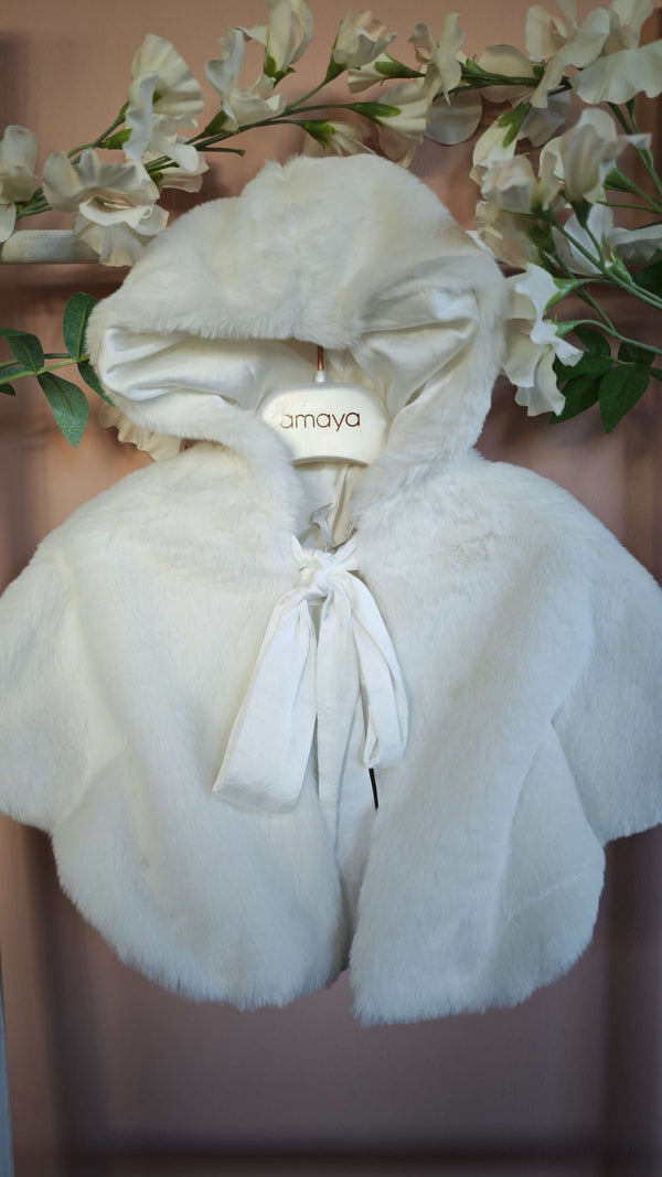 AMAYA MANTELLA IN PELLICCETTA CON CAPPUCCIO E FIOCCO VELLUTO CRUDO 190191