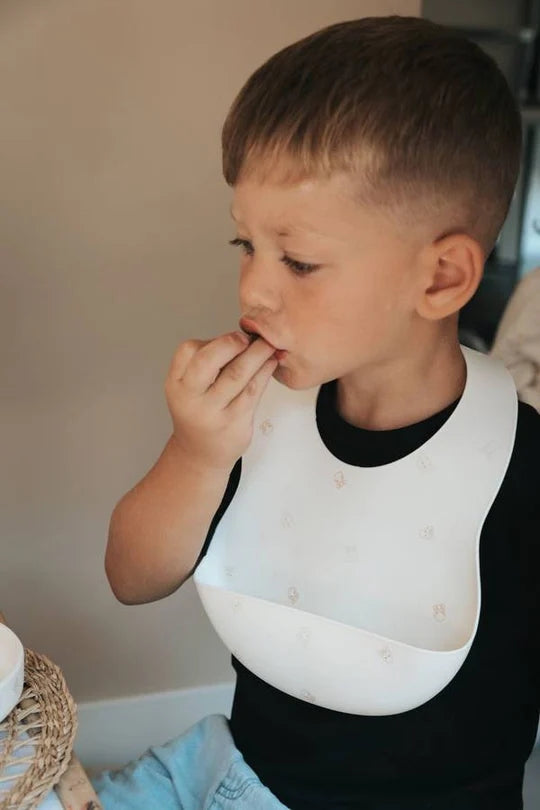 Il bavaglino e la tazza in silicone Bamboom uniscono funzionalità, comfort e stile, rendendo ogni pasto un momento di gioia e stile
