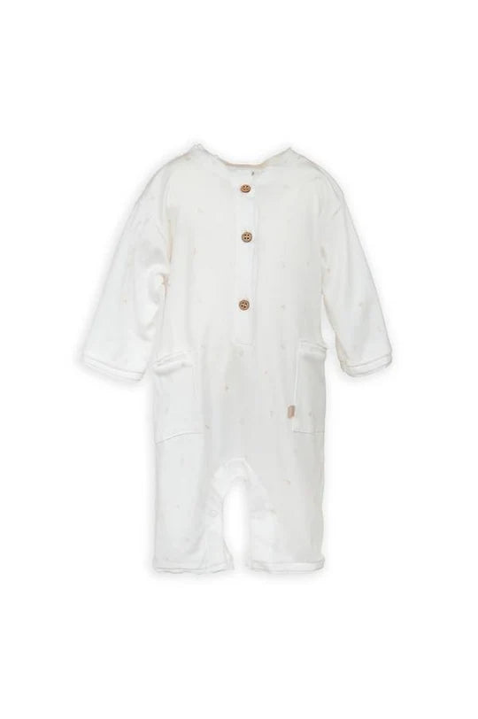 Una tuta che combina eleganza e praticità, perfetta per i momenti di relax e di gioco. Il tessuto realizzato a partire daL bambù e cotone naturale offre una piacevole sensazione sulla pelle, proteggendo i più piccoli con la sua delicatezza e proprietà termoregolatrici.