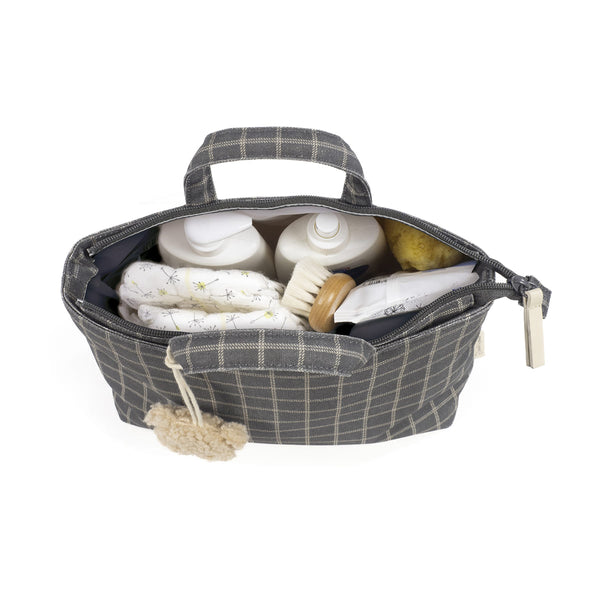 Il beauty case Tartan baby a quadri grigi di Pasito a Pasito in cotone resistente con trattamento impermeabile è una piccola borsa appositamente progettata per trasportare tutti gli articoli da toeletta del tuo bambino quando esci di casa. È un modello unico con molto stile per adattarsi a ciò di cui hai bisogno. È un design bello, semplice e comodo che offre uno spazio piccolo ma preciso per portare solo ciò di cui hai bisogno per l'igiene del tuo bambino, pettine, lozioni e altri oggetti che a volte, per via delle loro dimensioni ridotte, si perdono all'interno della borsa del corredino. Ha una chiusura lampo easy-open. Finiture di qualità. È realizzato con materiali di alta qualità, privi di coloranti azoici, ftalati e sostanze nocive per la salute. Può anche essere lavato a mano o in lavatrice a temperature fino a 30º. I prodotti per bambini Pasito a Pasito hanno un design molto diverso da tutti gli altri. Le loro collezioni sono caratterizzate da un lavoro dettagliato, sempre concepito da un punto di vista pratico. Utilizzano materiali di prima qualità per evidenziare l'eleganza e l'armonia in ciascuno dei loro pezzi. I nostri modelli sono esclusivi e inconfondibilmente alla moda, pensati per le mamme moderne che amano il buon gusto e apprezzano i dettagli tanto quanto noi. Specifiche: Materiali: 100% cotone con trattamento waterproof. Misure: 30X21X7 cm.