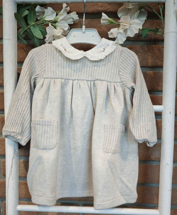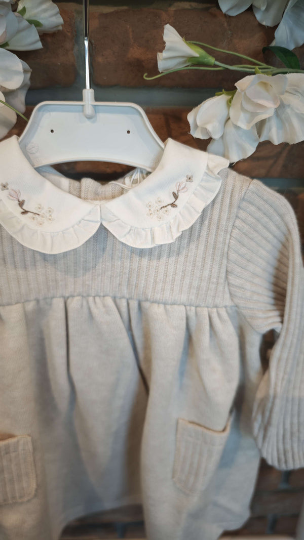 LALALU' ABITO MAGLIA BEIGE MELANGE CON RICAMO SUL COLLETTO
