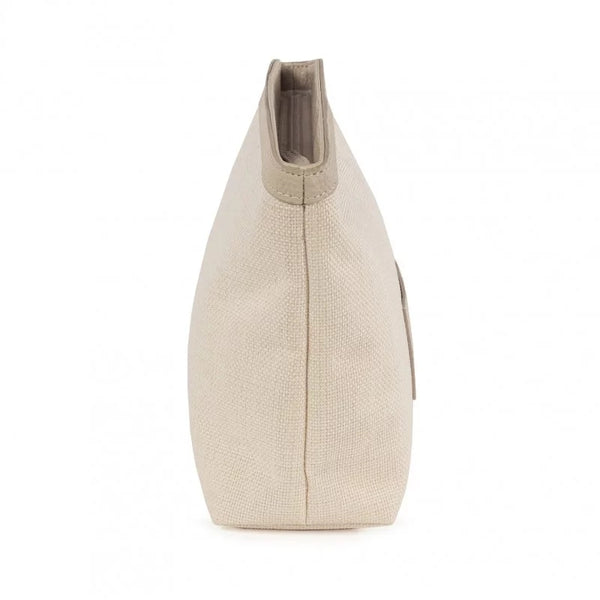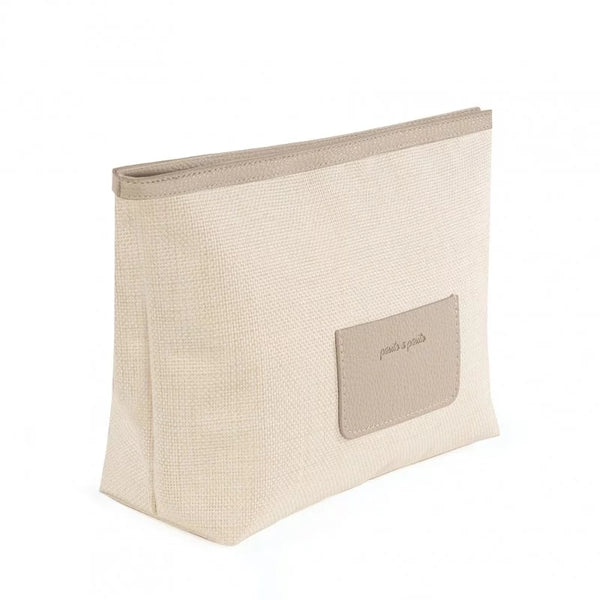 Borsa da toilette in tela color pesca . Questa piccola borsa da toilette è perfetta per trasportare tutti i prodotti per l'igiene del bambino.