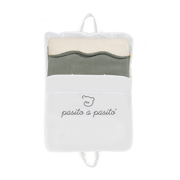 Il sacco nanna Paddington di Pasito a Pasito è i realizzato in un morbido tessuto simil-lana verde. Questo accessorio 3-in-1 è pensato per adattarsi a ogni tua esigenza: perfetto per l’uso a casa, come copertura per il seggiolino auto Gruppo 0 e come rivestimento per la navicella. Il retro è realizzato in materiale anti-sudore, che previene la sudorazione eccessiva e protegge il sedile, rendendo ogni uscita più confortevole per il bambino. Completamente universale, presenta più aperture e regolazioni per adattarsi facilmente alla maggior parte di navicelle, seggiolini e passeggini. Una volta rimossa la copertura di base, si trasforma in un leggero materassino per il passeggino, un’aggiunta versatile e indispensabile al tuo set di accessori per il bambino. Pensato con amore per creare un ambiente accogliente, offre al piccolo un riposo piacevole e avvolgente, grazie alla sua forma a nido che lo tiene al caldo e al riparo nelle giornate ventilate.