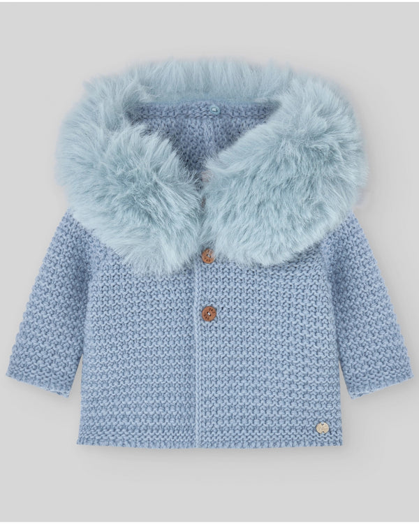 Paz Rodriguez giacca "essential" con cappuccio e pelliccia azzurro polvere