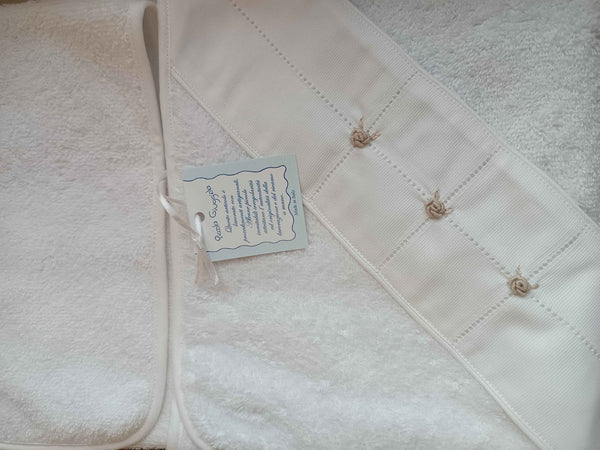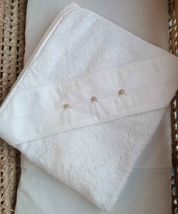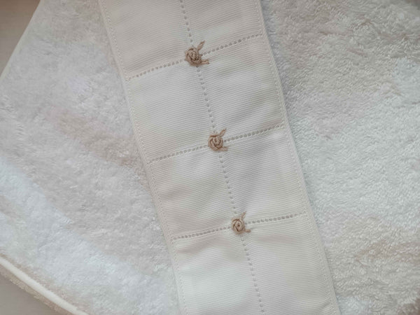 PICCOLA GIUGGIOLA ACCAPPATOIO QUADRATO RICAMATO BIANCO TORTORA