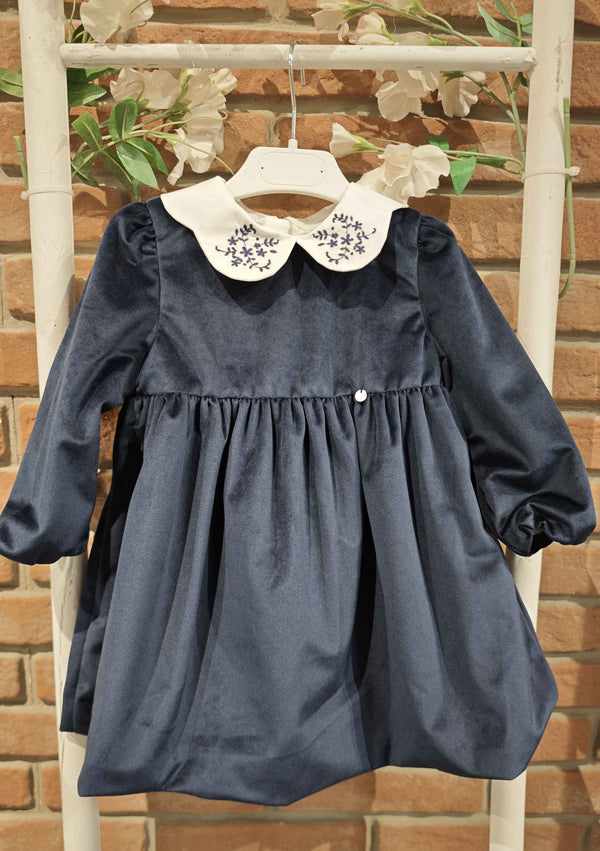 PURETè ABITO VELLUTO BLU CON COLLETTO RICAMATO OI2601606