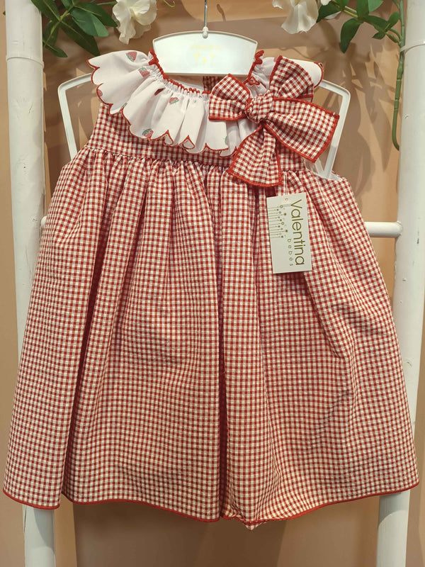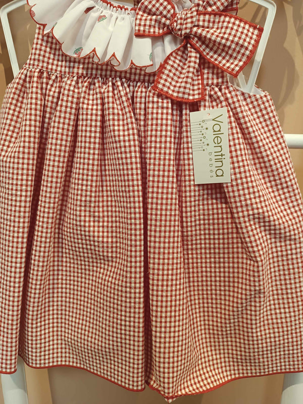 VALENTINA BEBES ABITO VICHY ROSSO E CULOTTE FRAGOLE