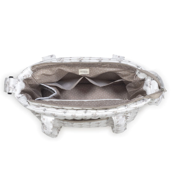 La borsa Botton con stampa floreale per passeggino è un modello molto leggero, e allo stesso tempo robusto e spazioso, per poter portare con sé tutto ciò di cui si ha bisogno durante le passeggiate con il bambino. Oltre alla sua grande capacità, è strutturata in modo da essere facilmente organizzabile, con diverse tasche esterne e interne che vi aiuteranno a tenere in ordine tutti gli accessori in modo da poterli individuare facilmente quando ne avete bisogno. Ha una tasca interna laminata per i vestiti bagnati, una tasca termica interna e due tasche laterali. Include un fasciatoio. Il suo design moderno e casual lo rende perfetto per l’uso quotidiano e per essere abbinato ai vostri look casual o sportivi. Ha manici corti per poterlo agganciare a qualsiasi tipo di passeggino e un manico lungo per poterlo appendere alla spalla. Alta qualità e stile. Realizzato in 100% cotone con trattamento impermeabile, facile da pulire a mano o in lavatrice a 30°C. Walking Mum protegge il vostro bambino utilizzando i migliori tessuti, privi di coloranti azoici e di sostanze nocive per la salute. La nostra collezione Walking Mum è disegnata con un particolare timbro di stile urbano e moderno che non passa inosservato, per vestire in modo diverso le passeggiate con il vostro bambino. Le borse premaman di questa linea sono più sportive e pratiche, pensate appositamente per le mamme e i papà moderni che apprezzano i design più attuali e di tendenza senza trascurare la qualità e la funzionalità degli accessori che completano e rendono più confortevoli tutte le passeggiate con i loro bambini. Specifiche: Materiali: 100% cotone con trattamento impermeabile. Misure: 33X25X12 cm.