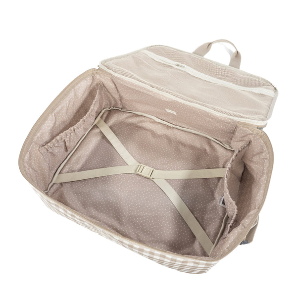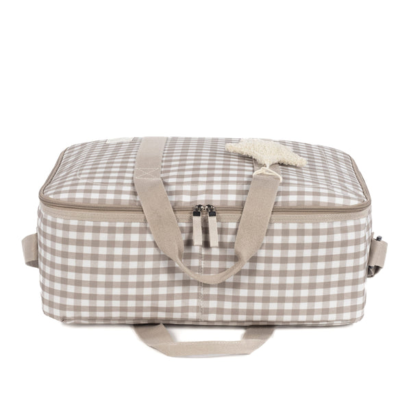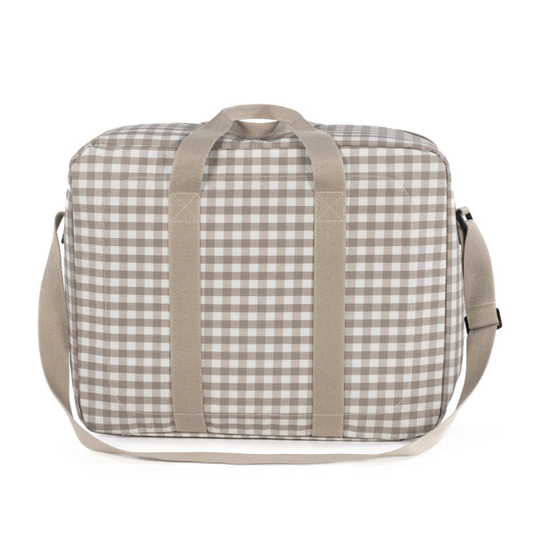 La valigia per neonati a quadri Caetana Sand beige è una borsa pensata appositamente per il momento più importante della gravidanza, ovvero l’arrivo del bambino, un momento in cui ci sono molte cose da preparare. Per questo avete bisogno di uno spazio confortevole per trasportare tutto il necessario per voi, il papà e il bambino. Questa valigia per neonati è il modello perfetto per contenere tutto ciò che non può mancare in questo giorno speciale. È comoda, leggera e maneggevole, con dimensioni rettangolari e una pratica apertura per coprire tutte le esigenze. Ha una sicura chiusura a zip a due vie per una facile apertura, una lunga tracolla e manici corti per il trasporto. Lo scomparto interno è foderato in tinta con gli elastici per contenere i vestiti e tenere tutto a posto. Include un ciondolo a forma di stella su cui è possibile ricamare il nome del bambino per personalizzare la borsa. Alta qualità e stile. Realizzata in materiale resistente e facile da pulire a mano o in lavatrice a 30°C. Walking Mum protegge il vostro bambino utilizzando i migliori tessuti, privi di coloranti azoici e di sostanze nocive per la salute. La nostra collezione Walking Mum mantiene tutta la qualità del marchio Pasito a Pasito ma con una particolare impronta di stile urbano e moderno che non passa inosservato, per vestire diversamente le passeggiate con il vostro bambino. Le borse premaman di questa linea sono più sportive e pratiche, pensate appositamente per le mamme e i papà moderni che apprezzano i design più attuali e di tendenza senza trascurare la qualità e la funzionalità degli accessori che completano e rendono più confortevoli le passeggiate con i loro bambini. Specifiche: Materiali: 65% cotone /35% poliestere plastificato. Misure: 49X37X17 cm.